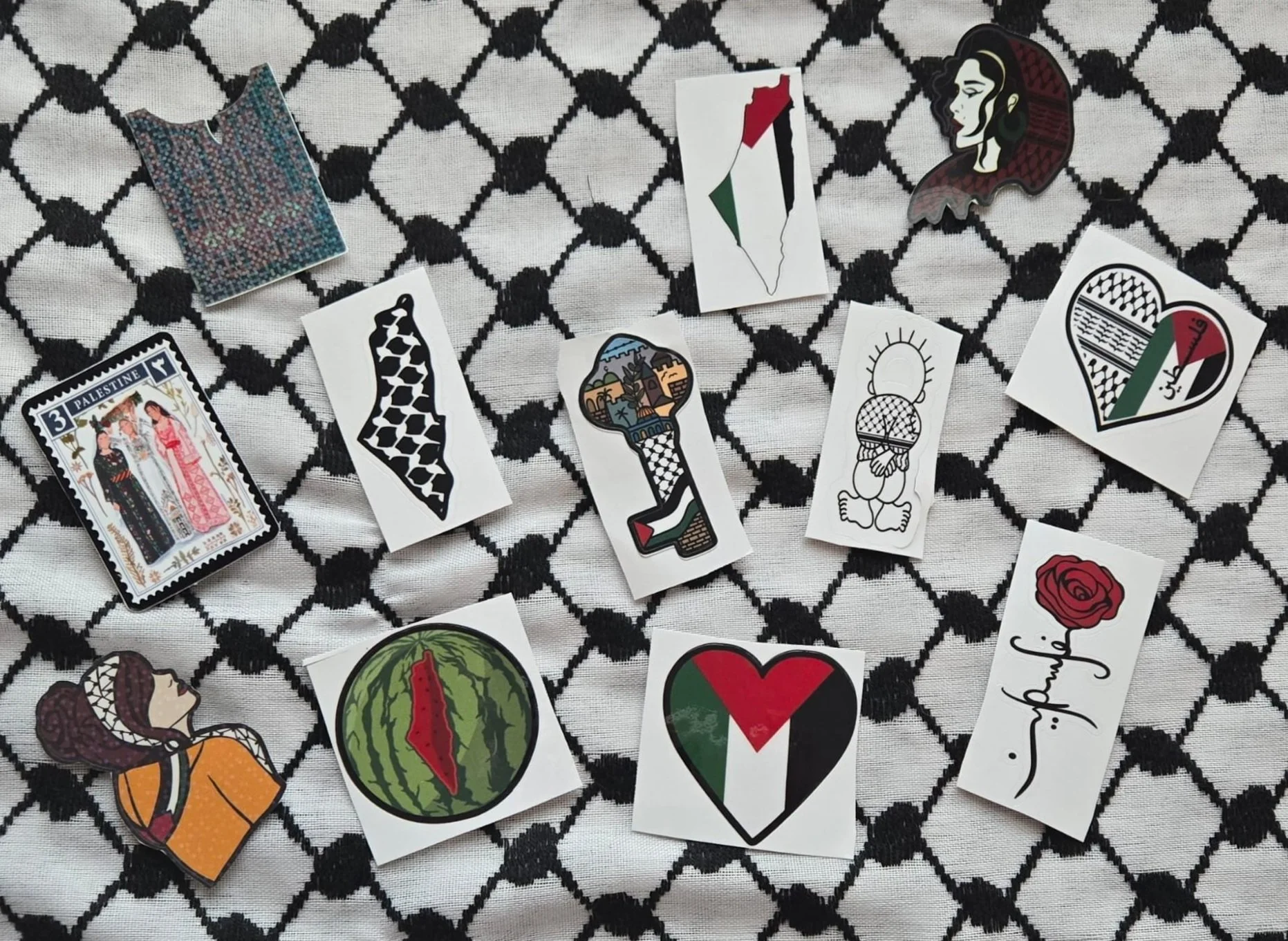 Categories: All Events Spice Cups keychains Tote Bags & Makeup Bags Badge Reels Stickers All / Sticker (Variety) $3.00 Palestine Stamp Sticker $3.00 Watermelon Flag sticker $3.00 Palestinian Thobe Sticker $3.00 Palestinian woman sticker-Palestine hoodie $3.00 Palestinian Woman sticker $3.00