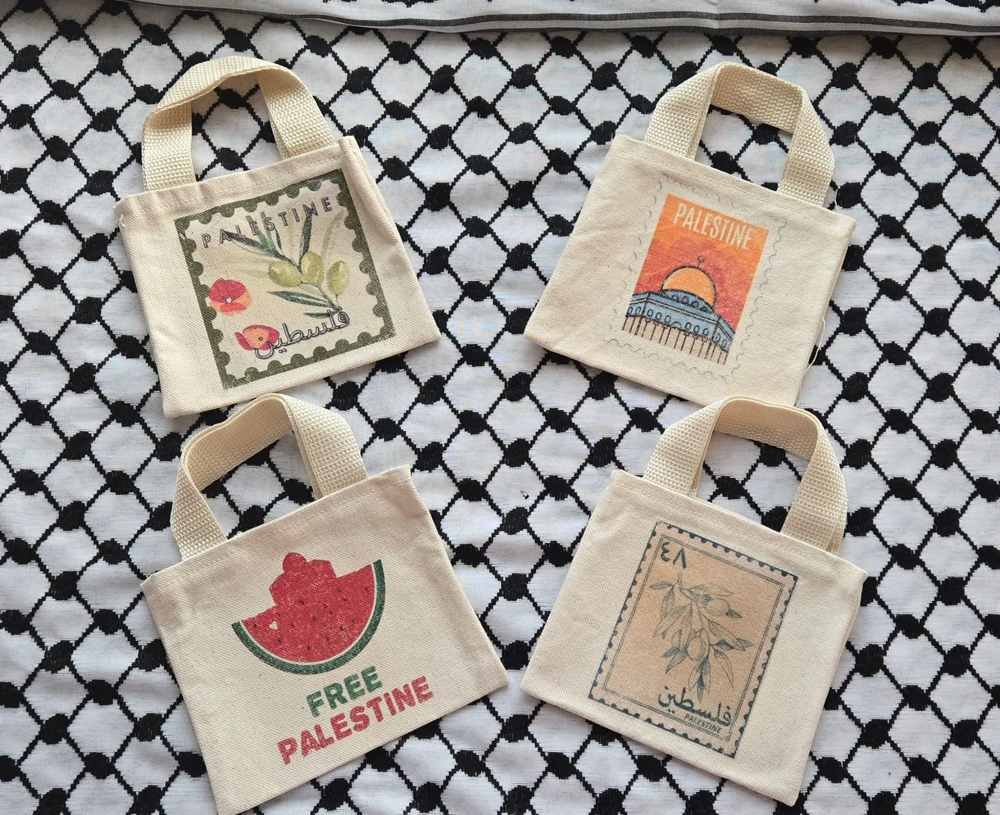 Categories: All Events Spice Cups keychains Tote Bags & Makeup Bags Badge Reels Stickers All / Mini Tote & Makeup Bag from $8.00 Palestine 48 Olive Tote $15.00 Pomegranate Stamp Tote $15.00